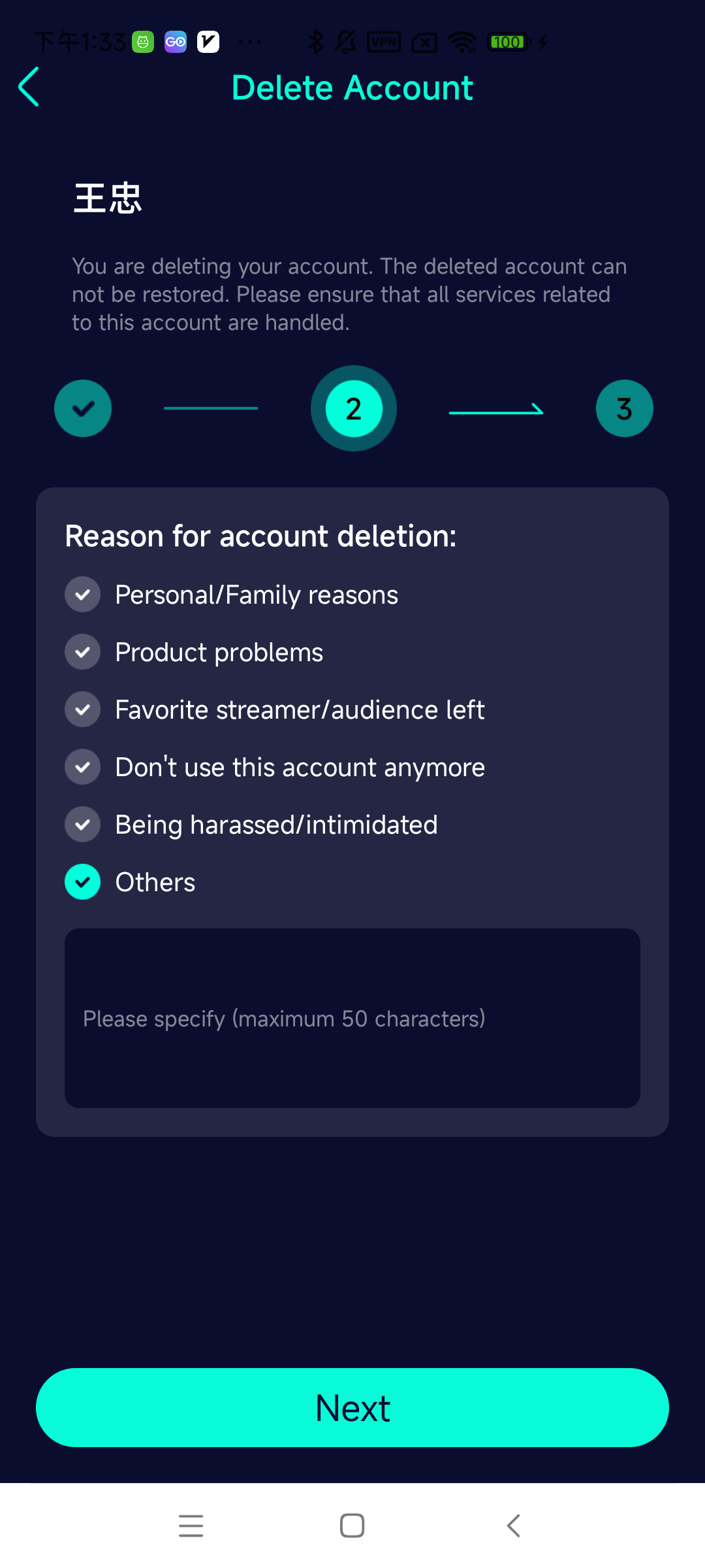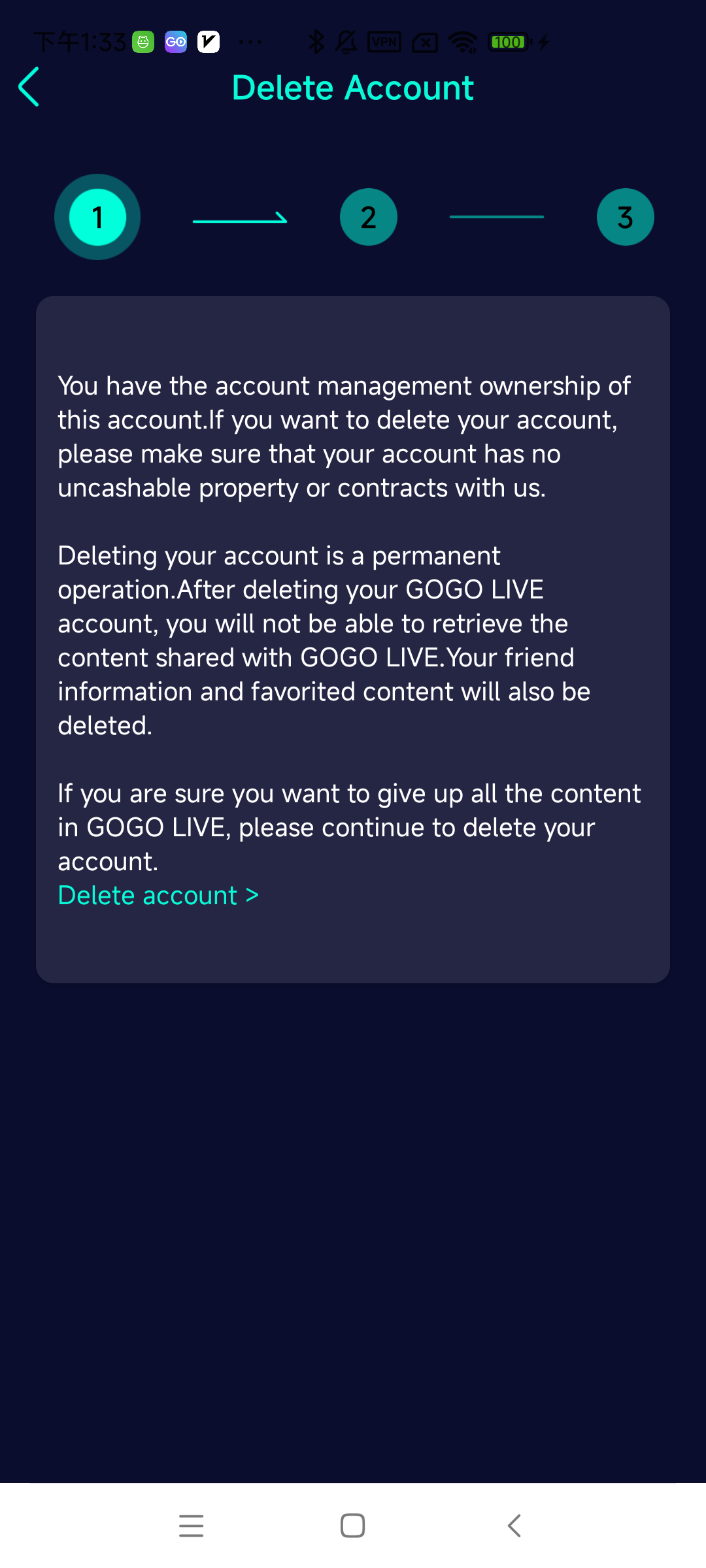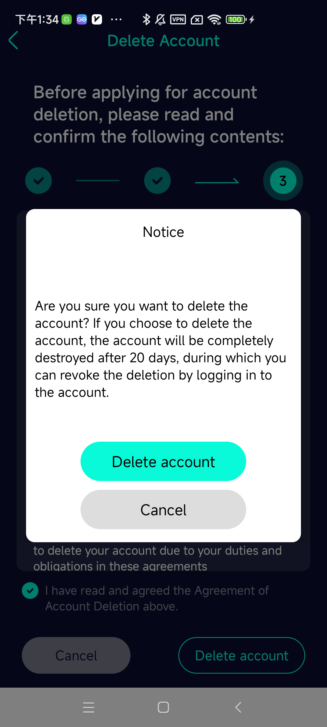 6. In this notice page you will have the option of deleting your account or cancelling the deletion process.