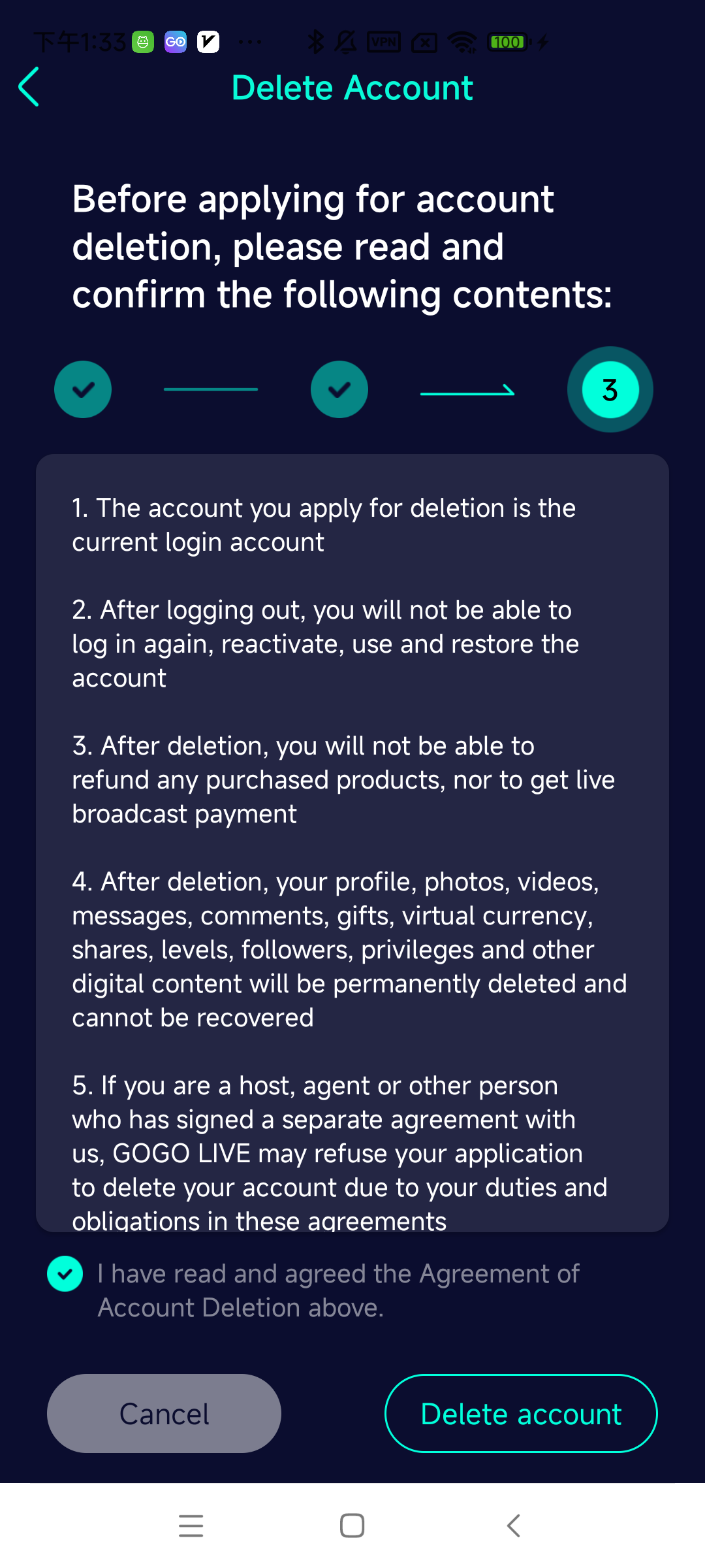 5. Read the information and check the box that confirms you have read and understand what will happen if your account is deleted.